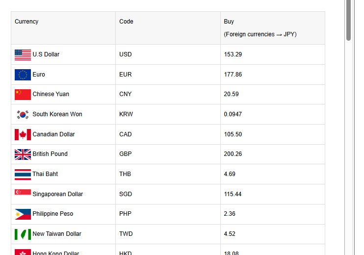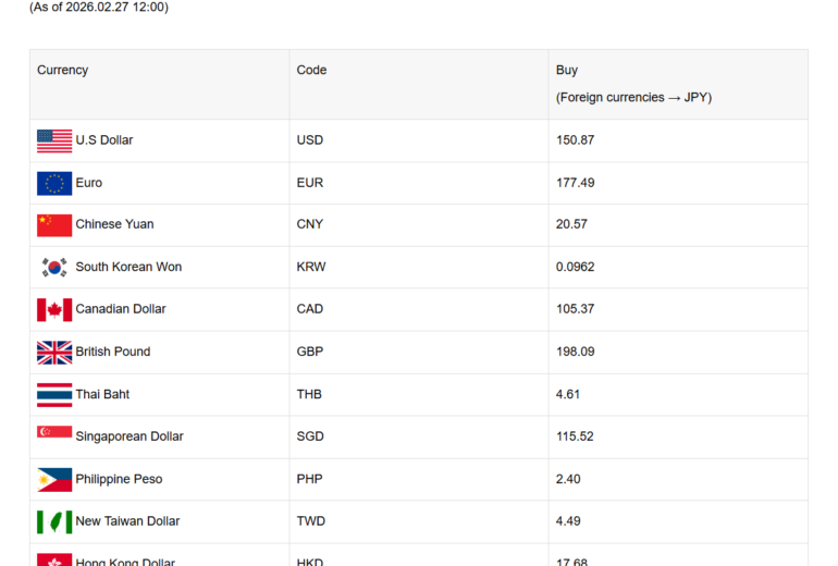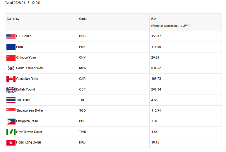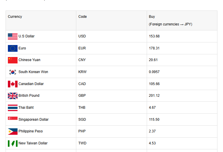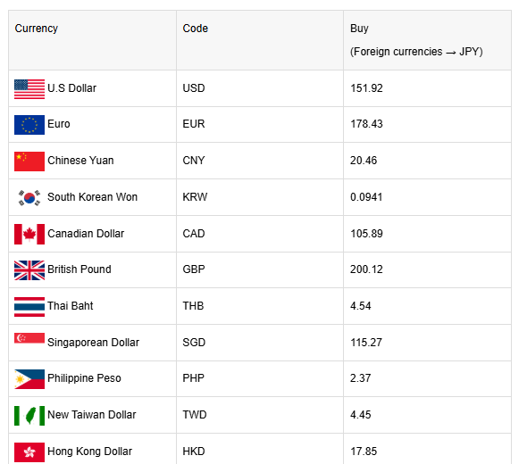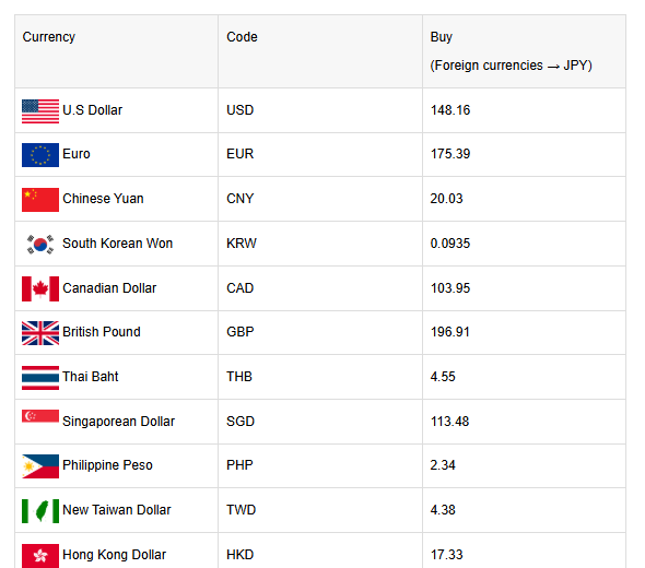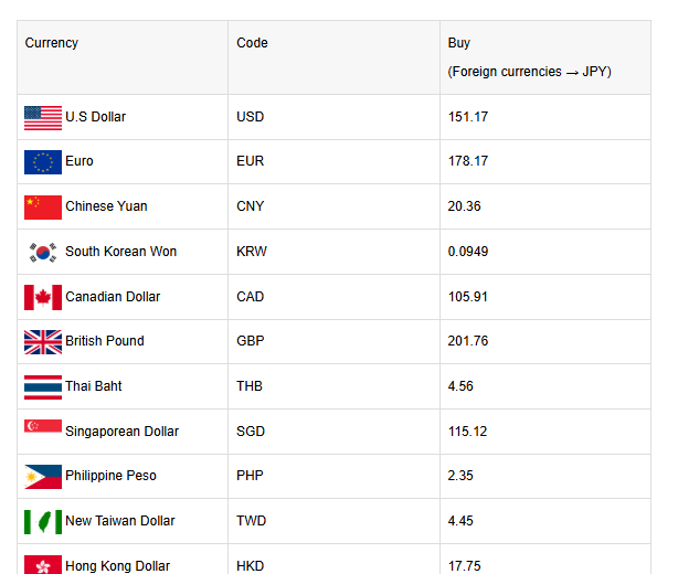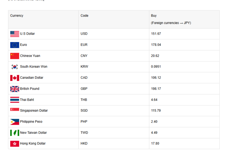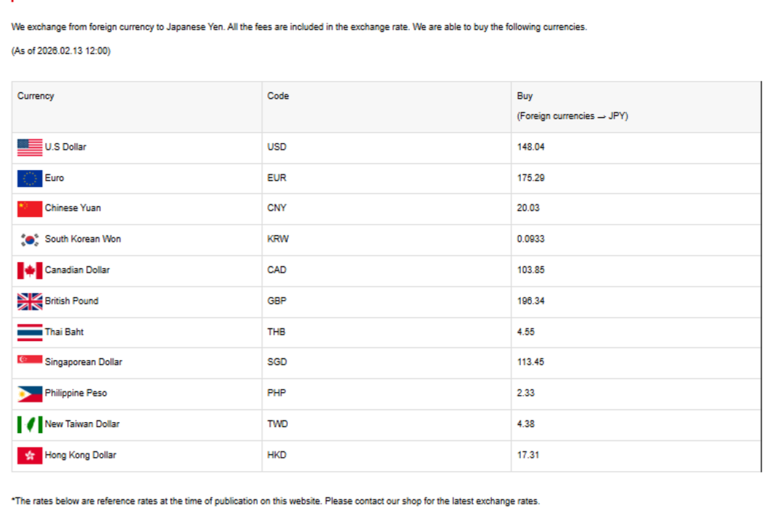 - The exchange rate to Japanese yen (buying rate) will be calculated based on the rate on the day of your visit.