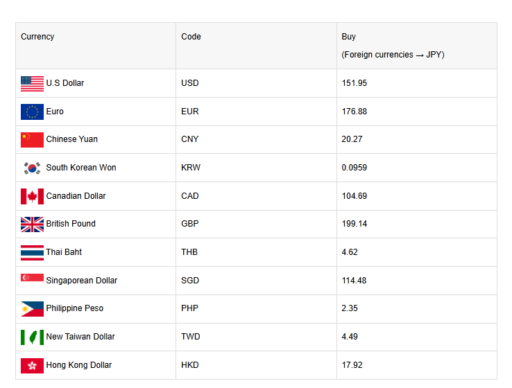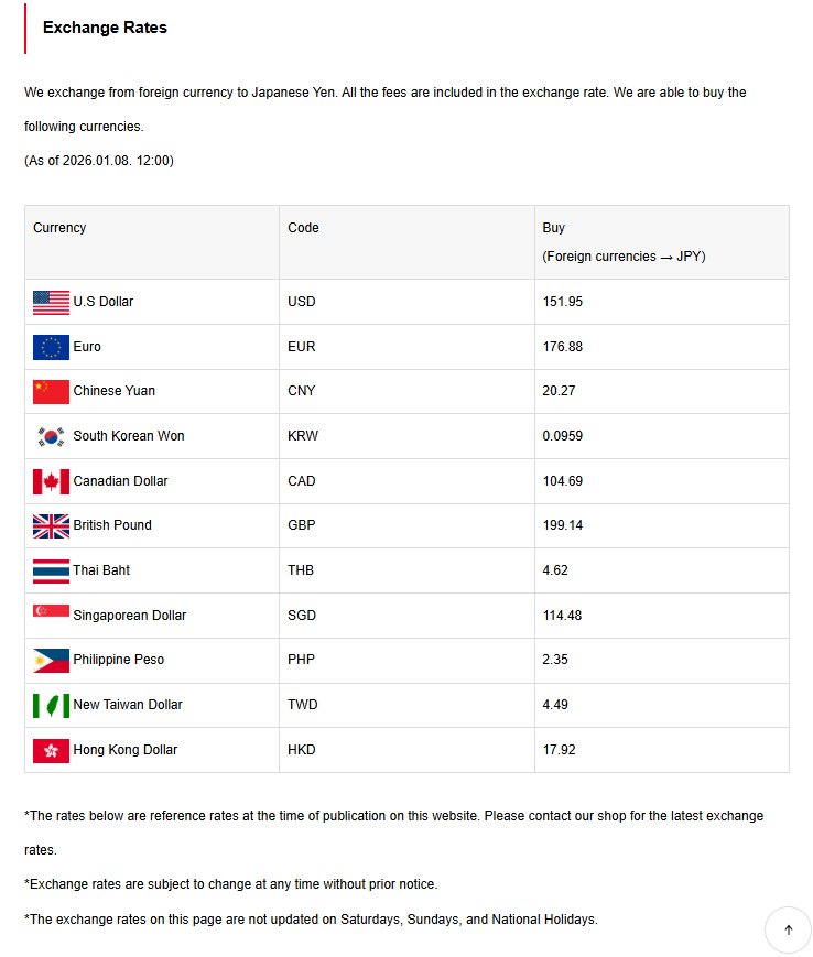 Today’s exchange rate. For foreign currency exchange, please visit “OSAKA-EXCHAGE.”