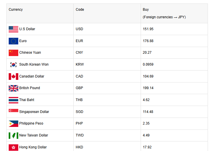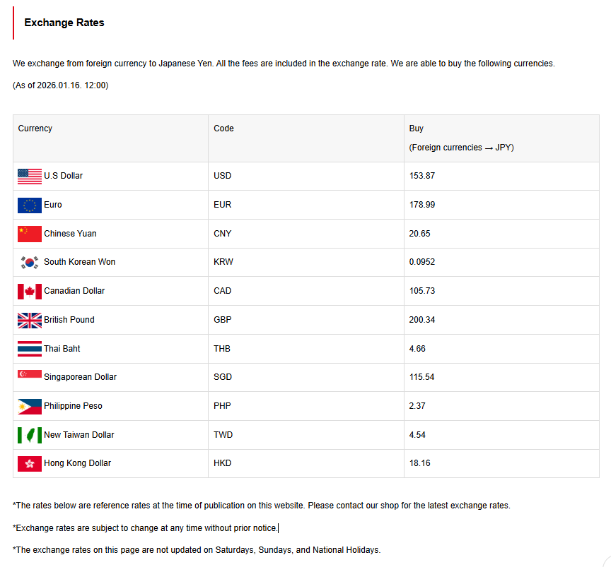 Today’s exchange rate. For foreign currency exchange, please visit “OSAKA-EXCHAGE.”