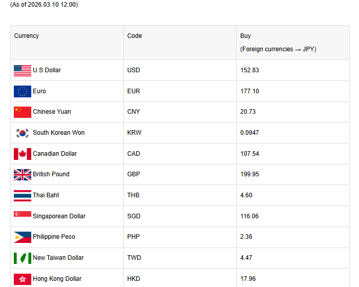 Recent Rates (2026-03-10)